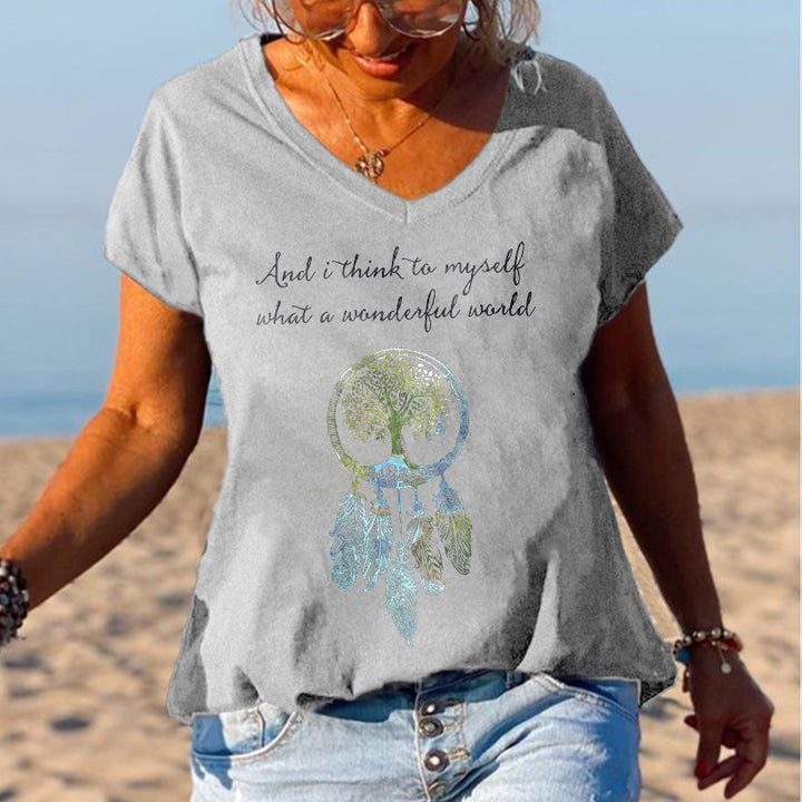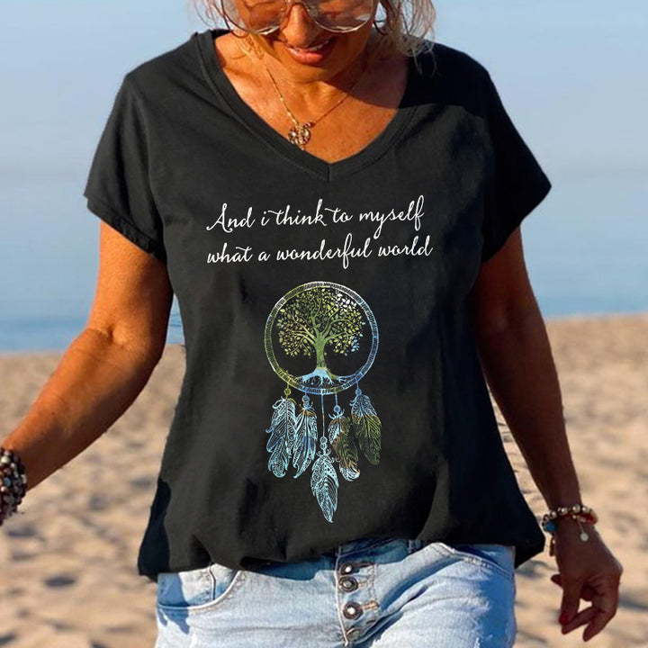 Product Name And I Think To Myself What A Wonderful World Print T-shirt