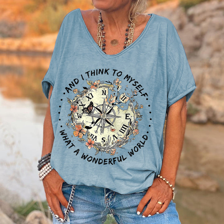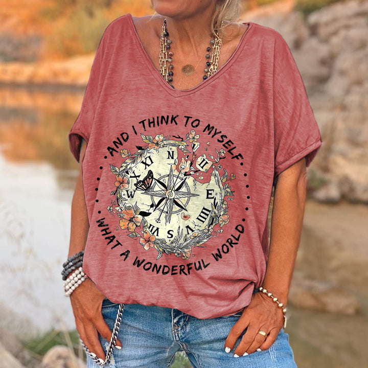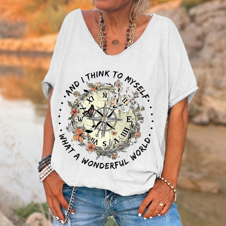And I Think To Myself What A Wonderful World Printed Hippie T-shirt