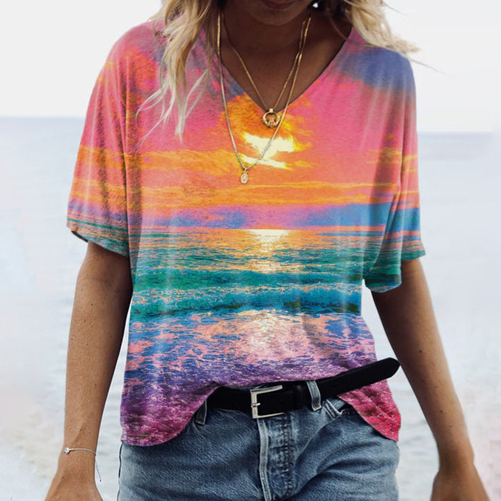 [🔥Clearance Sale]Beautiful ocean V-neck graphic tees designer