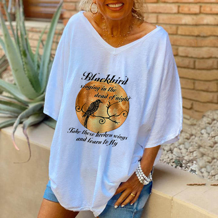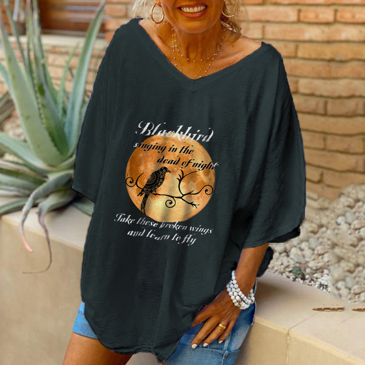 Blackbird Singing In The Night Printed Women T-shirt Oversized
