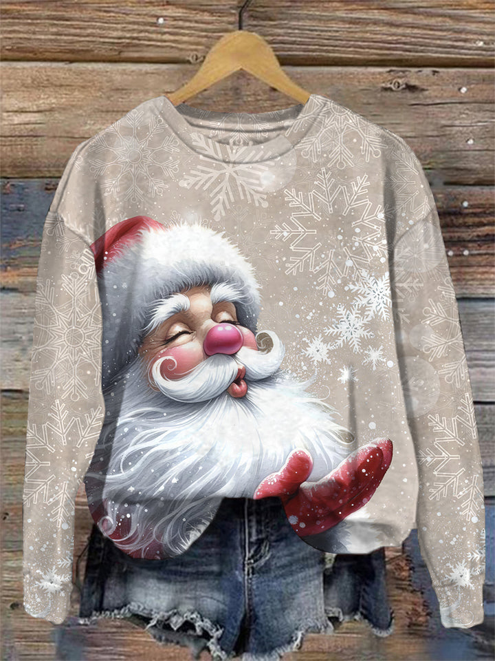 Christmas Santa Snowflake Print Casual Sweatshirt