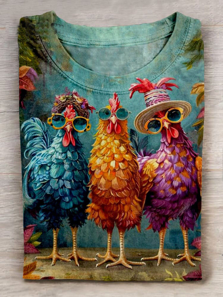 Product Name Colorful Chicken Printed Crew Neck Women's T-shirt