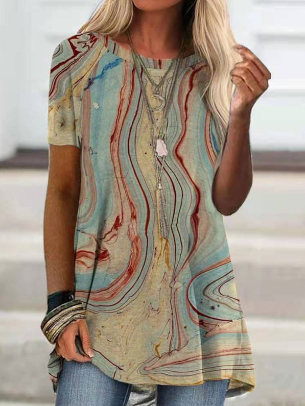 Crew Neck Printed Loose Short Sleeve T-shirt