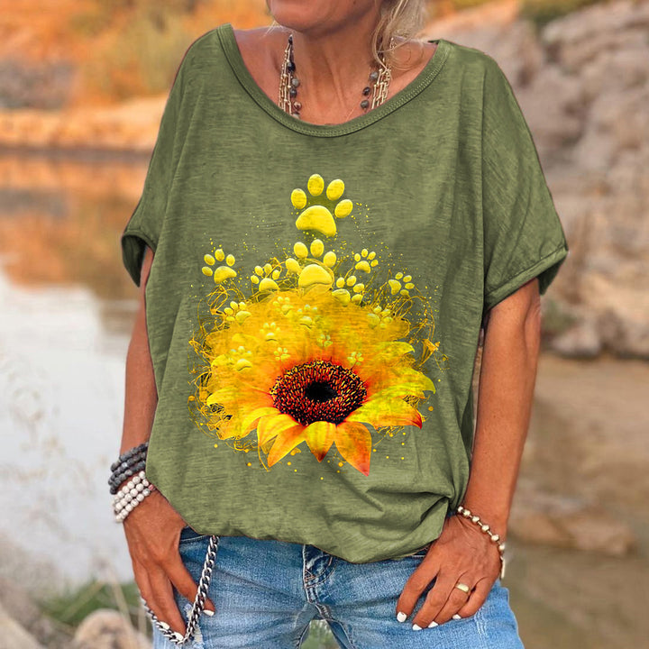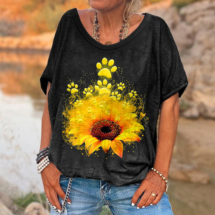 Product Name Dog Shirt Dog Paws Sunflower Women's T-shirt