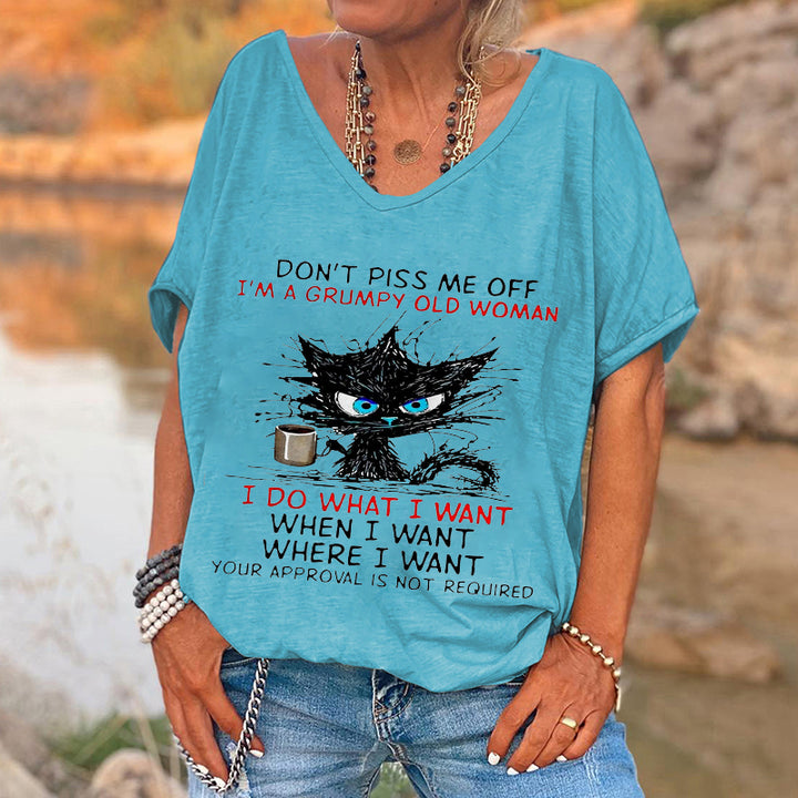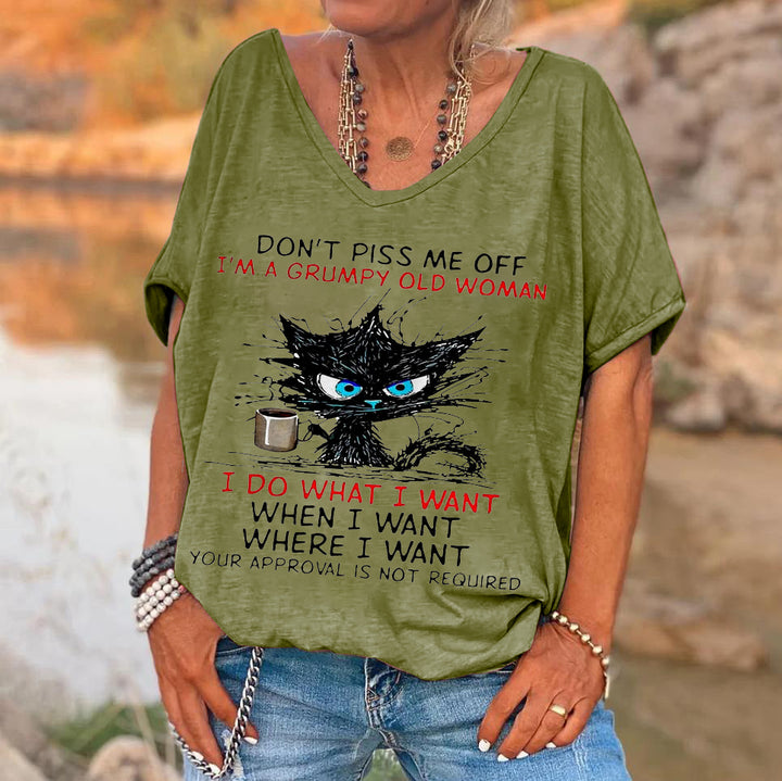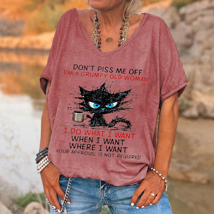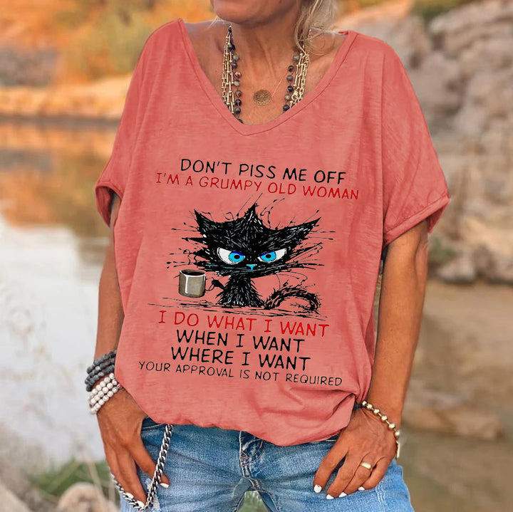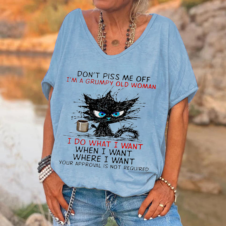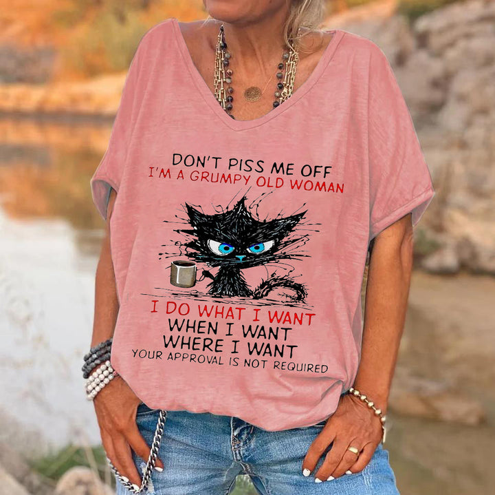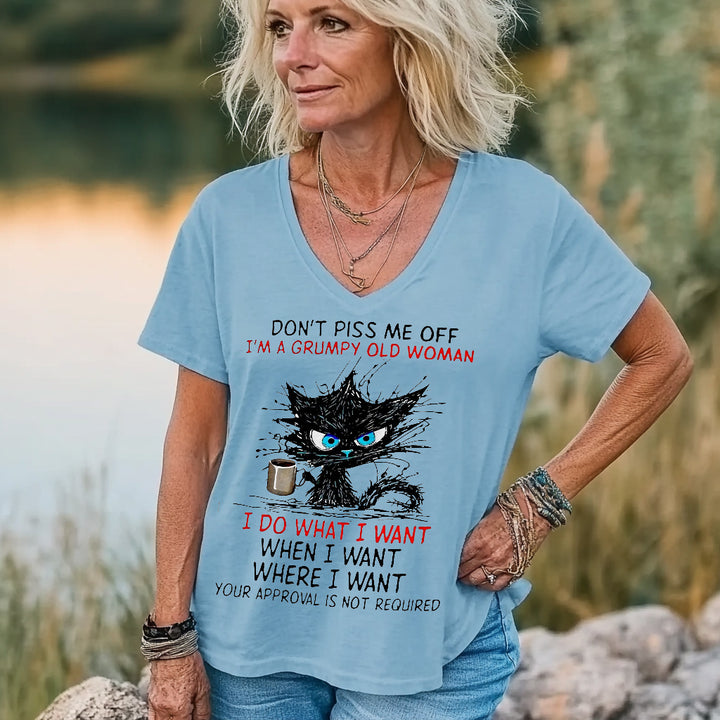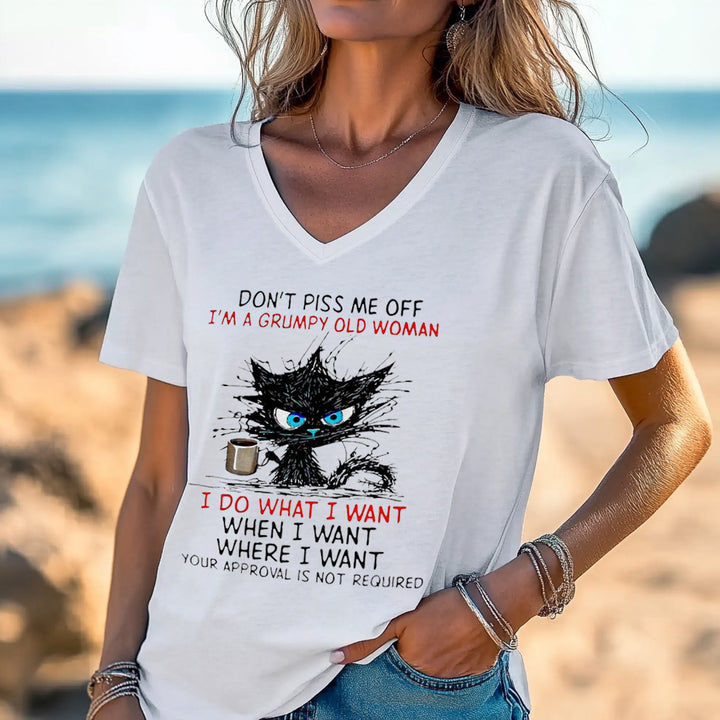 Custompupshirt Don't Piss Me Off I'm A Grumpy Old Woman Printed V-Neck Women's T-shirt