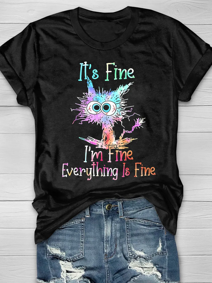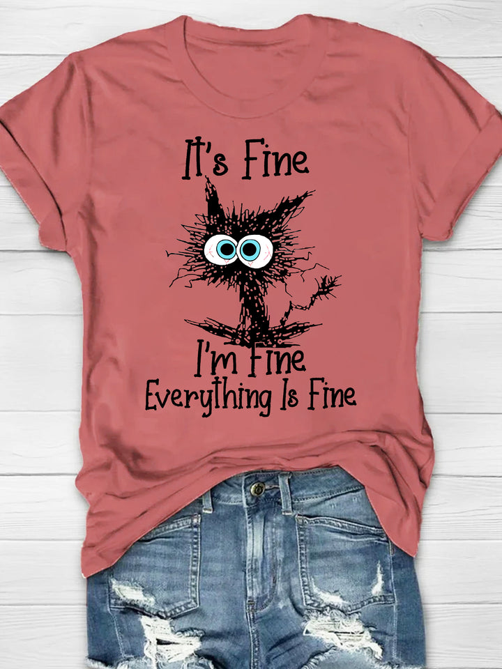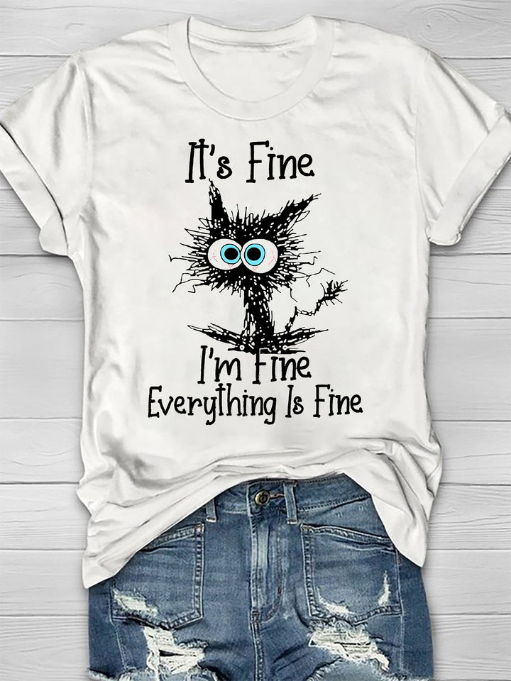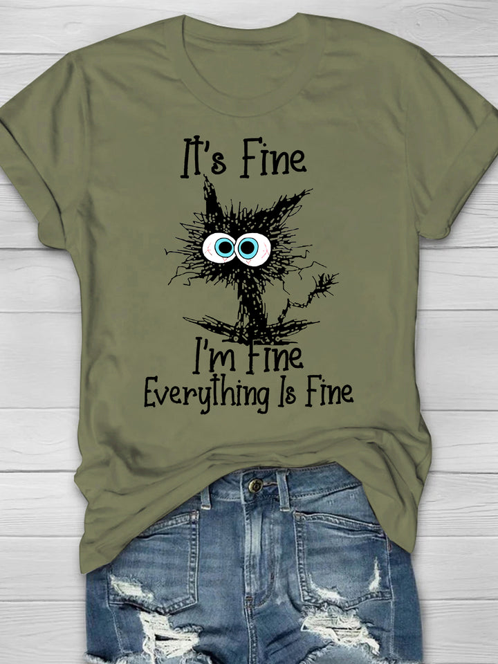 Product Name Funny Grumpy Cat It's Fine I'm Fine Everything Is Fine Graphic Print Short Sleeve T-shirt