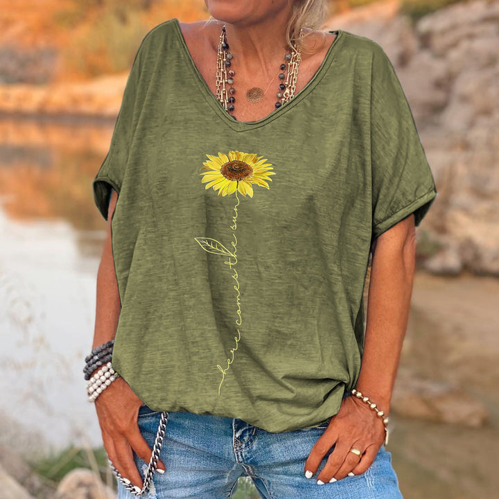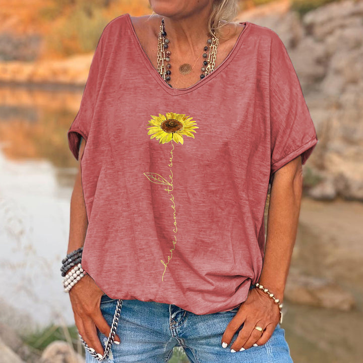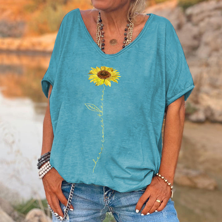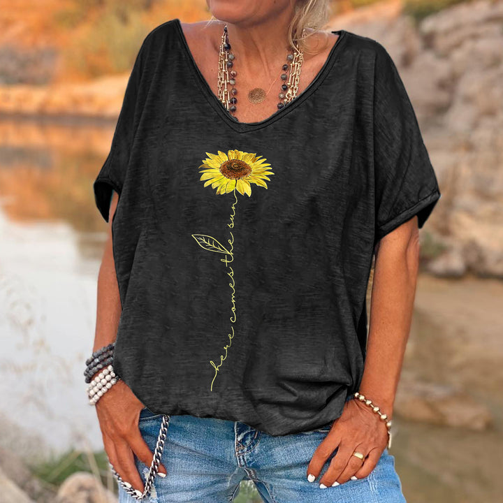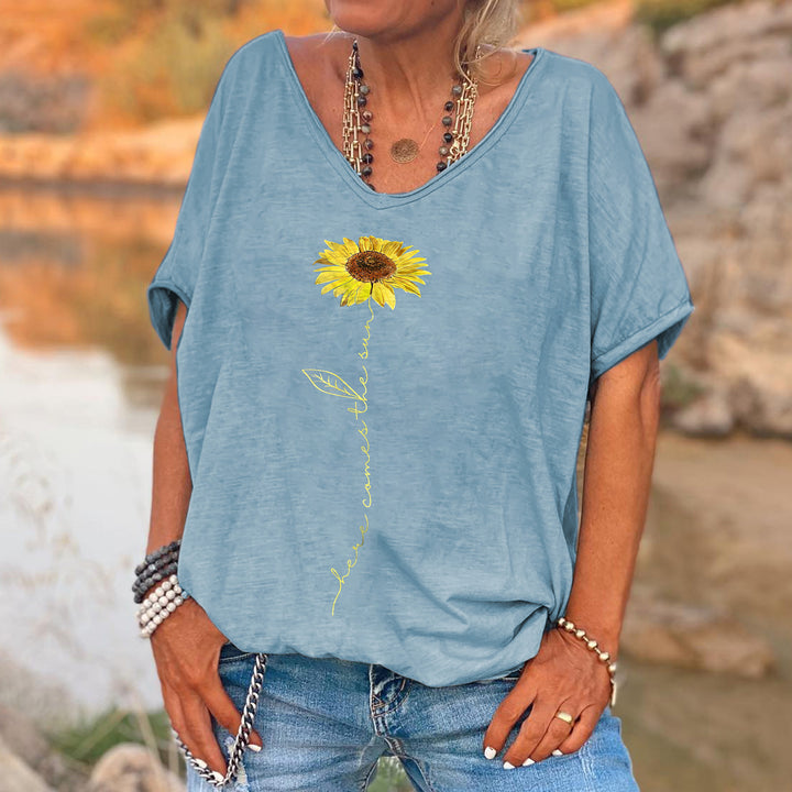 Product Name Here Comes The Sun Printed Sunflower T-shirt
