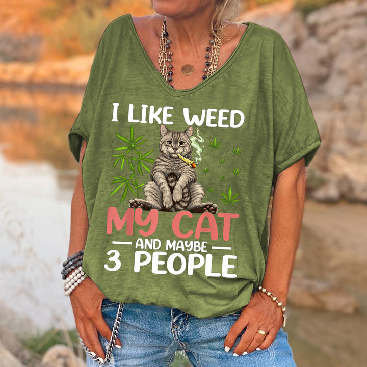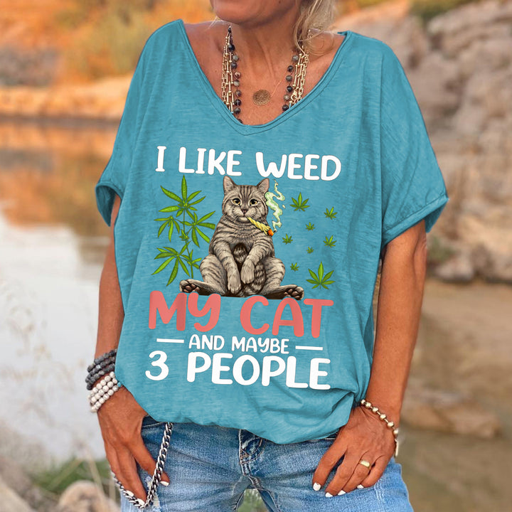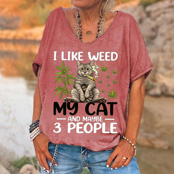 🔥🔥I Like Weed My Cat Print Women's V-neck T-shirt