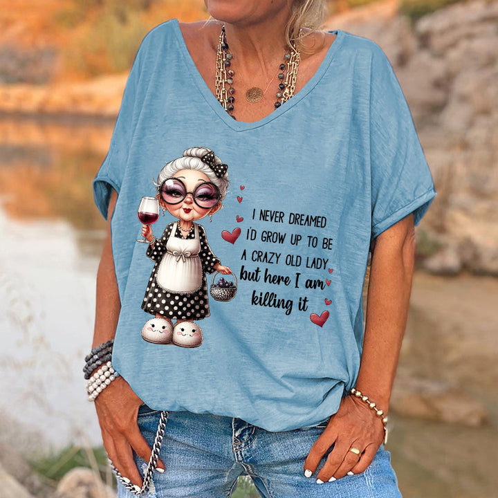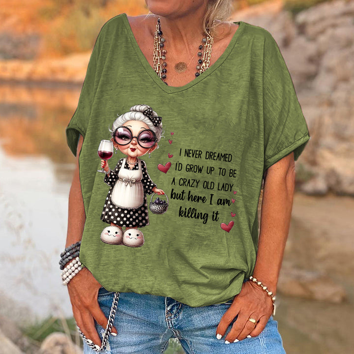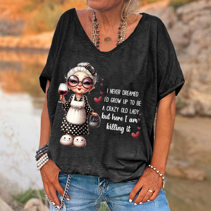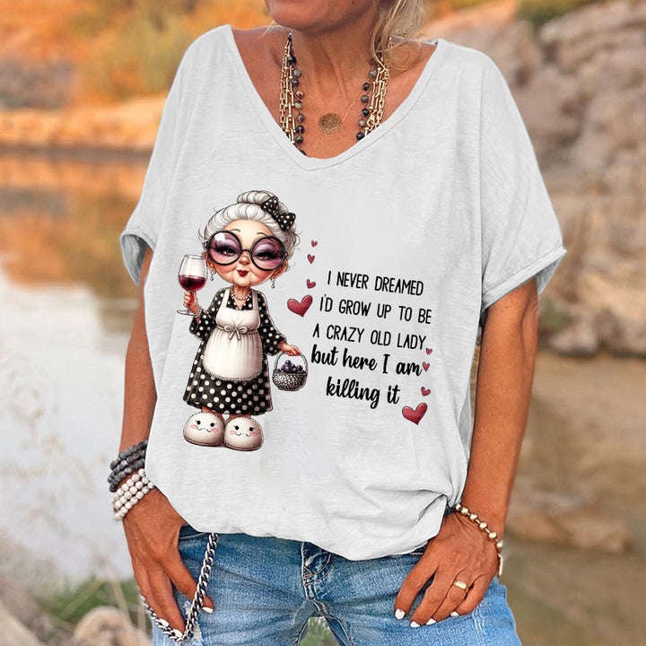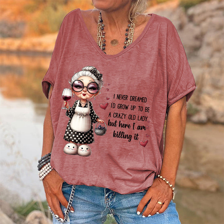 I Never Dreamed Id Grow Up To Be A Crazy Old Lady Printed V-neck Women's T-shirt