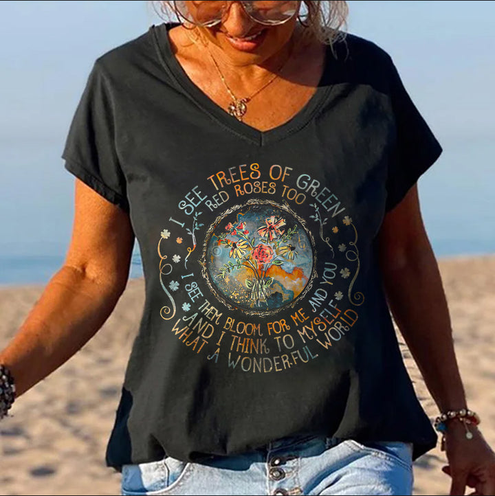 Product Name I See Trees Of Green Red Roses Too Printed Women's T-shirt