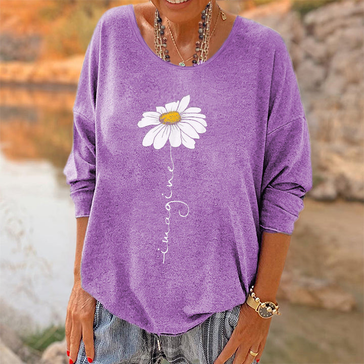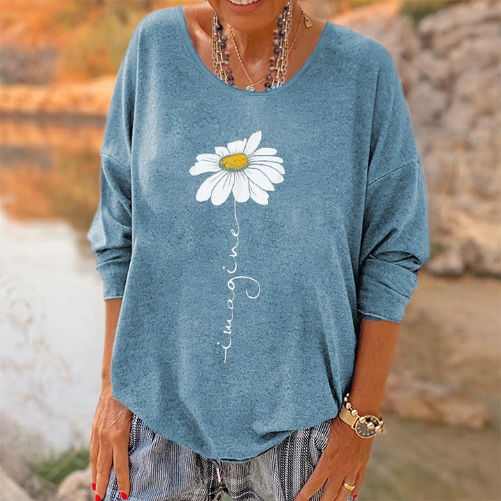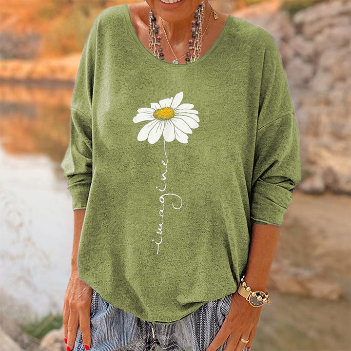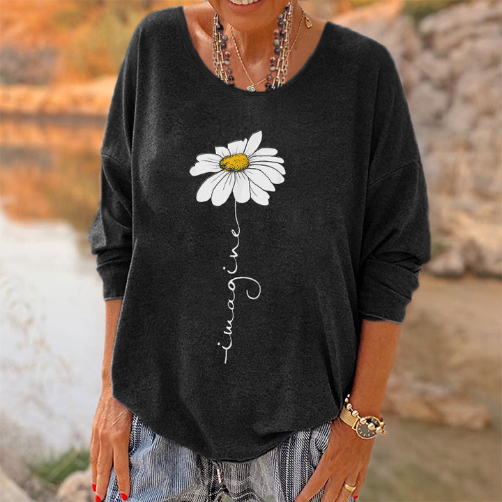 Oversized Imagine Little Daisy Printed Hippie Long Sleeves T-shirt