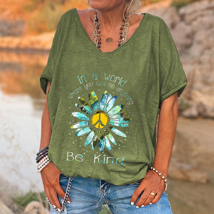 Product Name In A World Where You Can Be Anything  Printed Hippie T-shirt