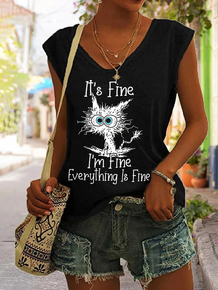It's Fine I'm Fine Everything Is Fine Print Sleeveless Tank Top