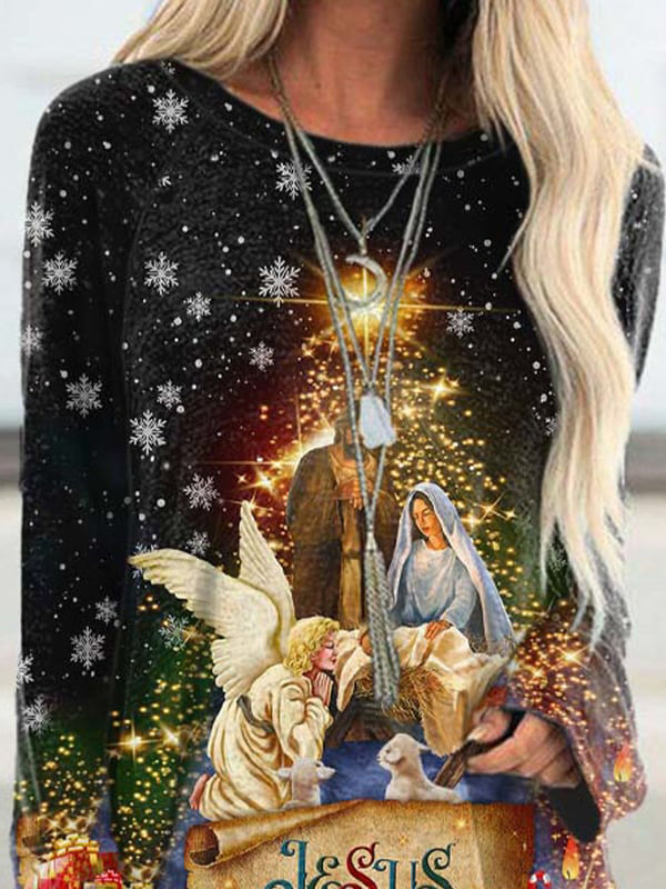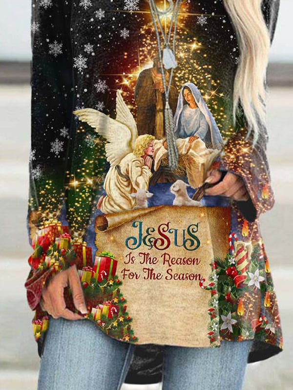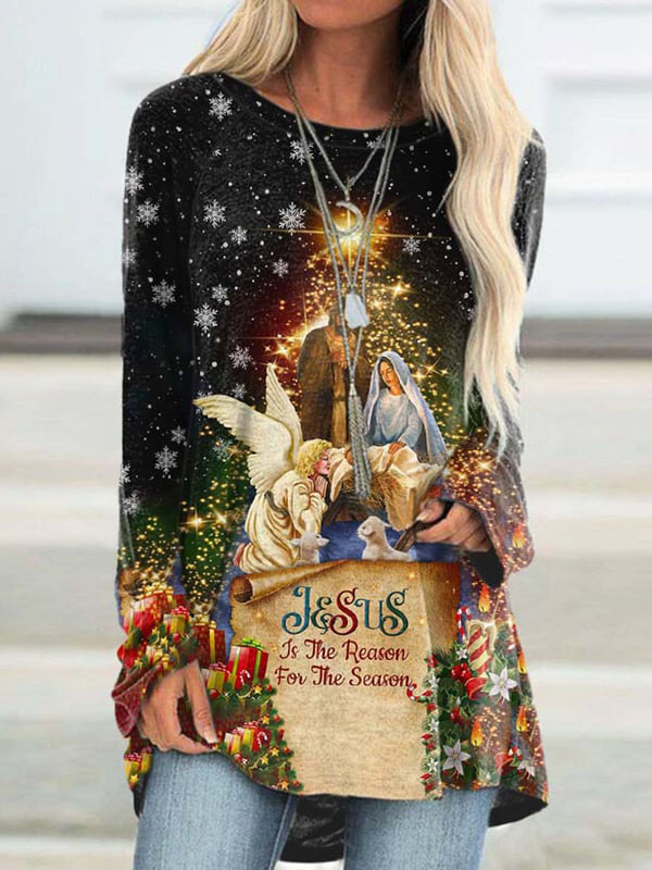 Jesus Is The Reason For The Season Print Crew Neck Women's Loose T-shirt