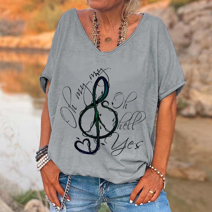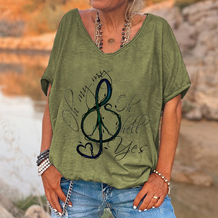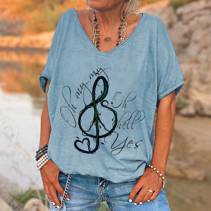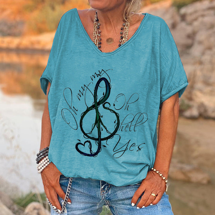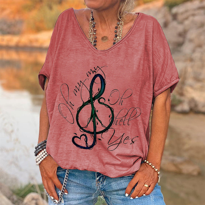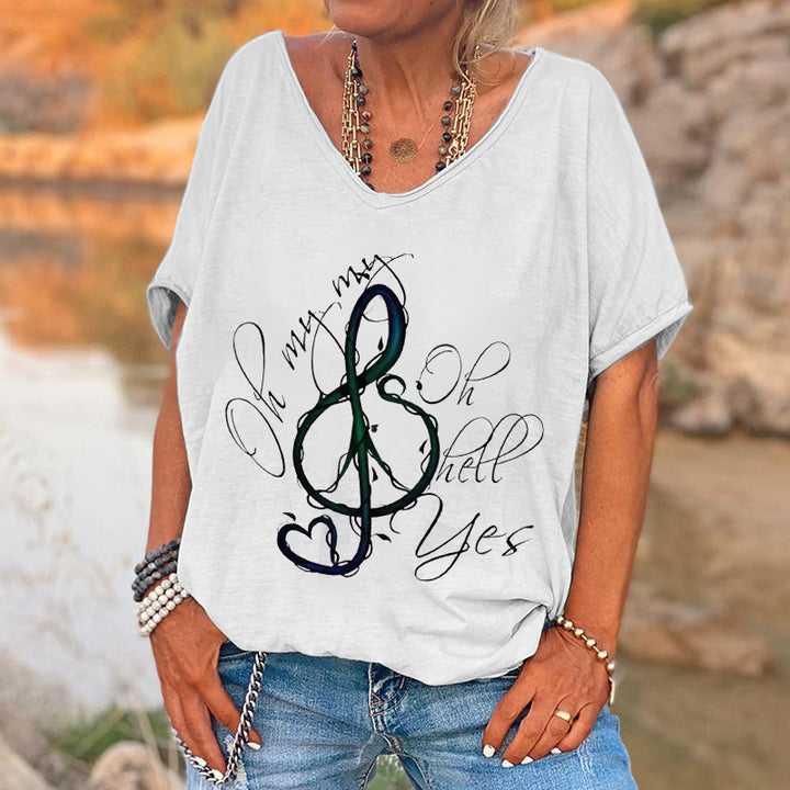 Product Name Musical Symbol Printed Basic T-shirt For Women