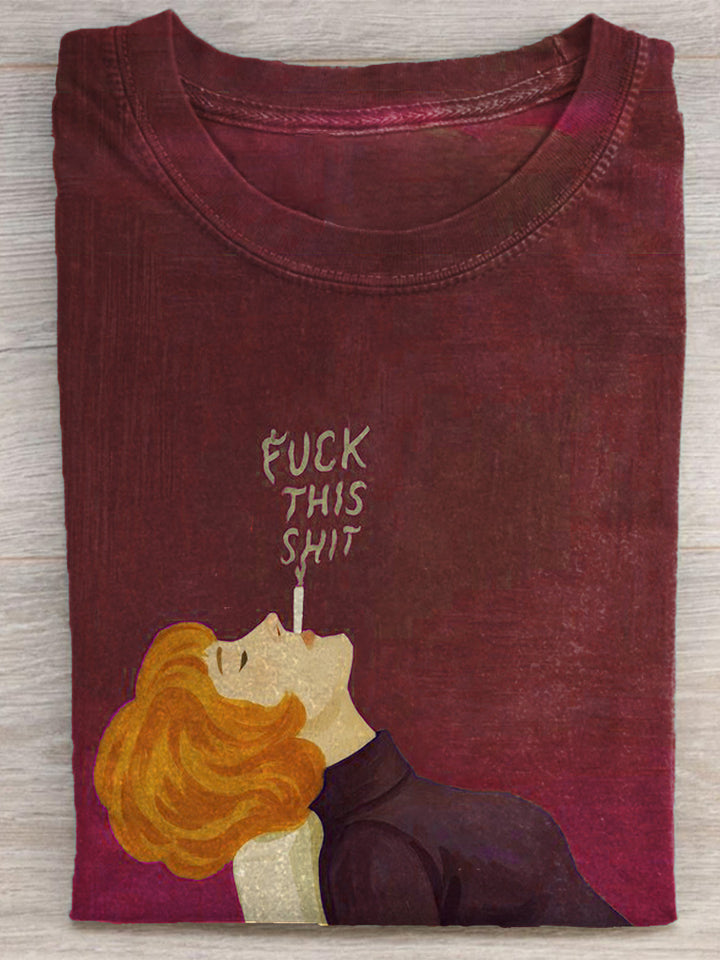 Retro Funny Ironic Fuck This Thit Print T-shirt