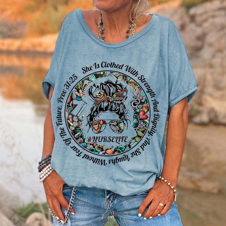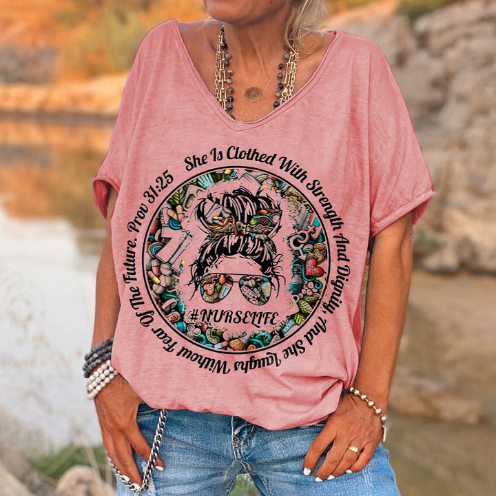 Product Name She Is Clothed With Strength And Dignity Printed Hippie Tees