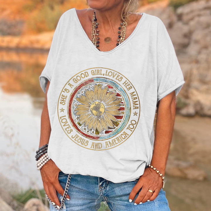 Product Name She's A Good Girl, Loves Her Mama Printed Women's T-shirt