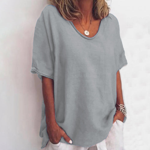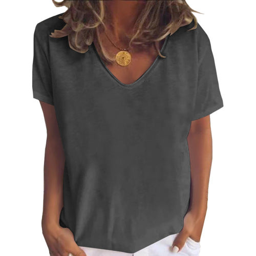 Solid color V-neck short-sleeved plus size women's T-shirt