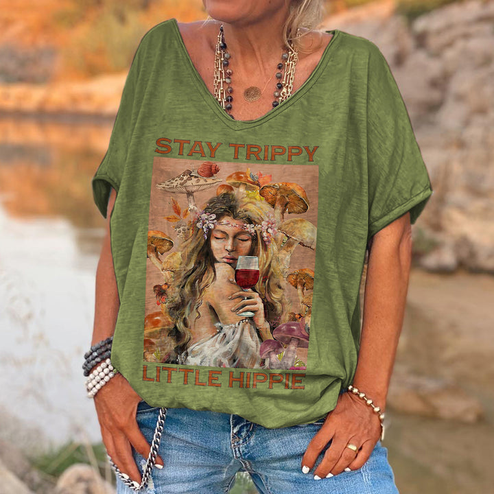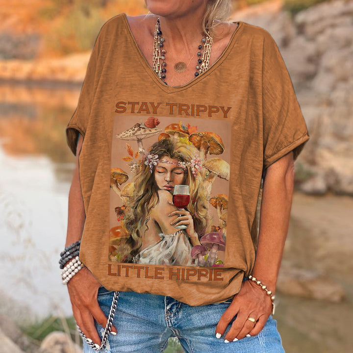Stay Trippy Little Hippie Printed T-shirt