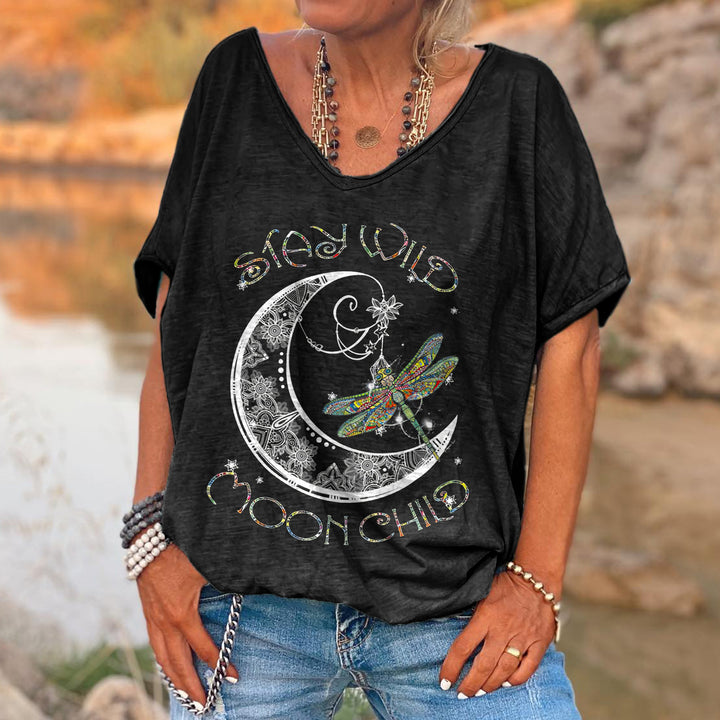 Product Name Stay Wild Moon Child Printed Dragonfly Tees