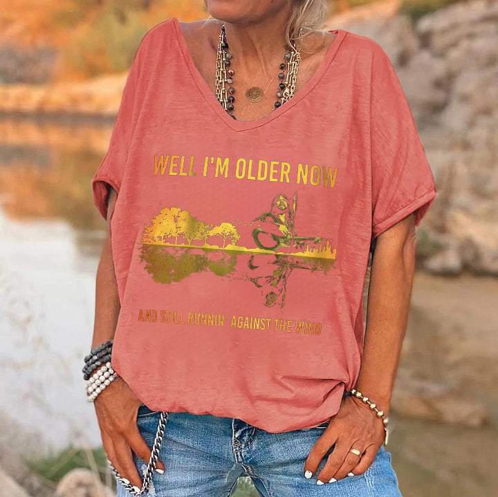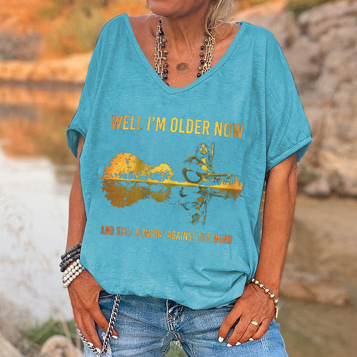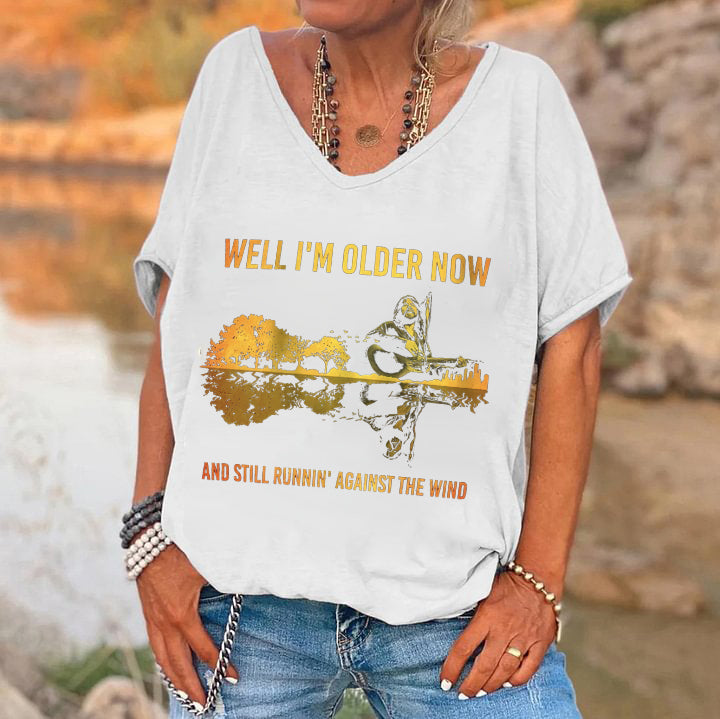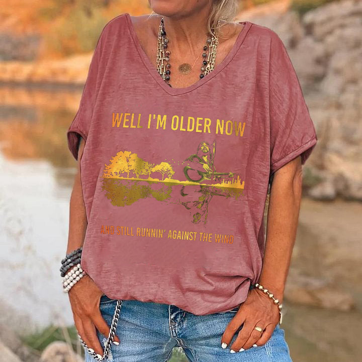 Product Name Well I'm Older Now And Still Runnin' Against The Wind Printed Women's T-shirt