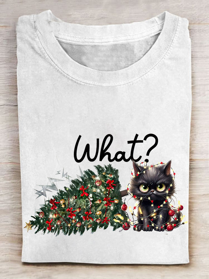What? Funny Cat Printed Crew Neck Women's T-shirt