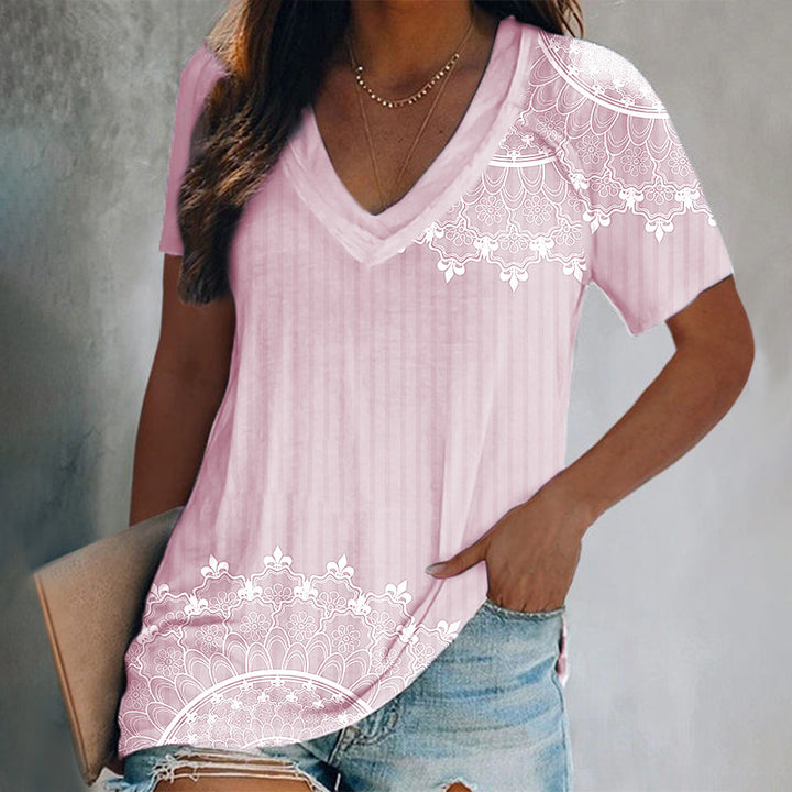 Product Name Women's Casual Mandala Printed V-neck T-shirt