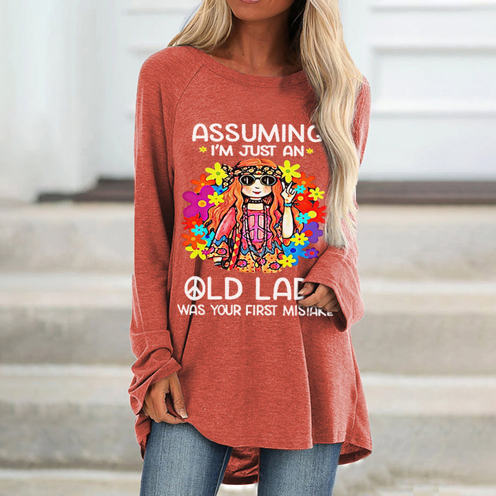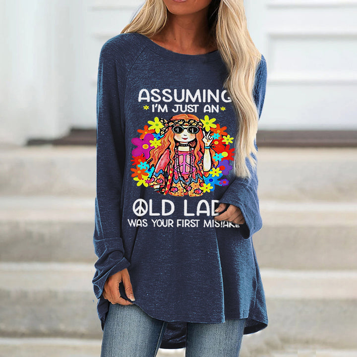Women's Funny Assuming I'm Just An Old Lady Was Your First Mistake Hippie Long Shirts