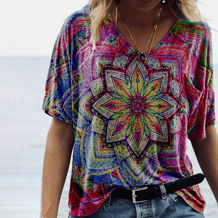 Womens Vintage Mandala Patterns Tie Dye Blouse